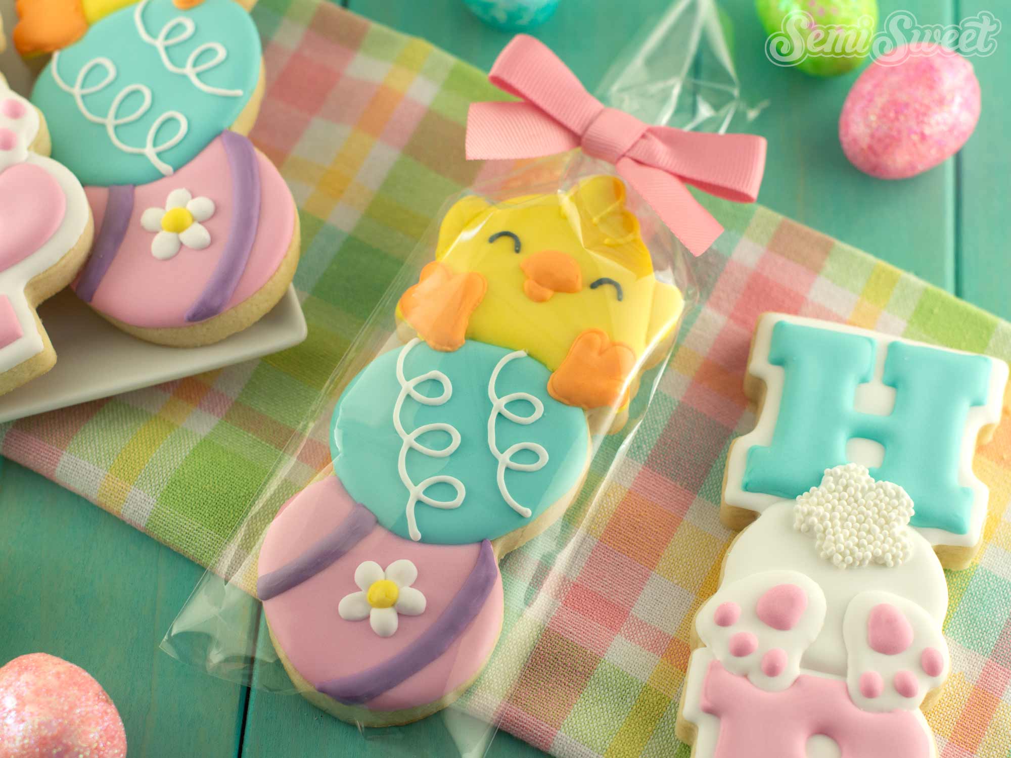 Learn how to decorate a tall and skinny Easter chick stacked on colorful eggs with this step-by-step royal icing tutorial to create the perfect Easter basket gift.