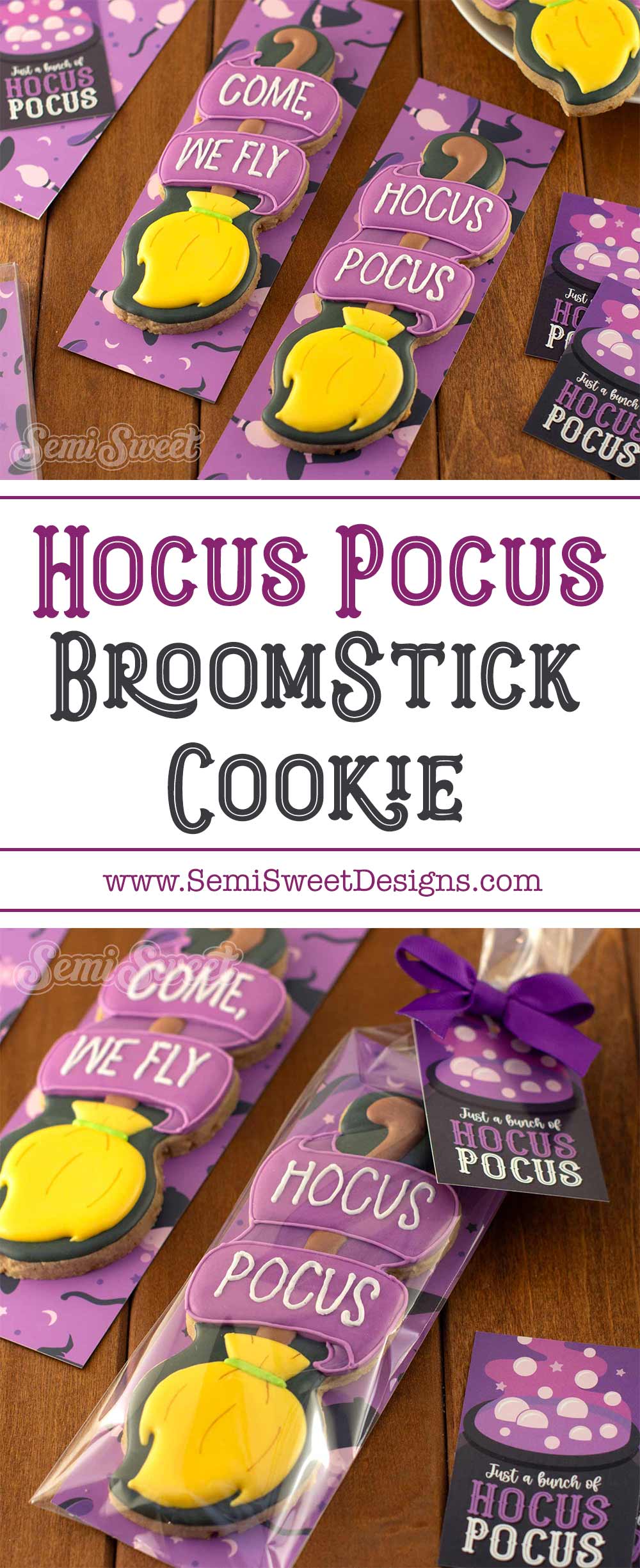 Halloween cookie decorating is in full swing, and today I’m sharing a magical design that’s sure to enchant your dessert table, a witch’s broom with a festive “Hocus Pocus” banner wrapped around the broomstick.