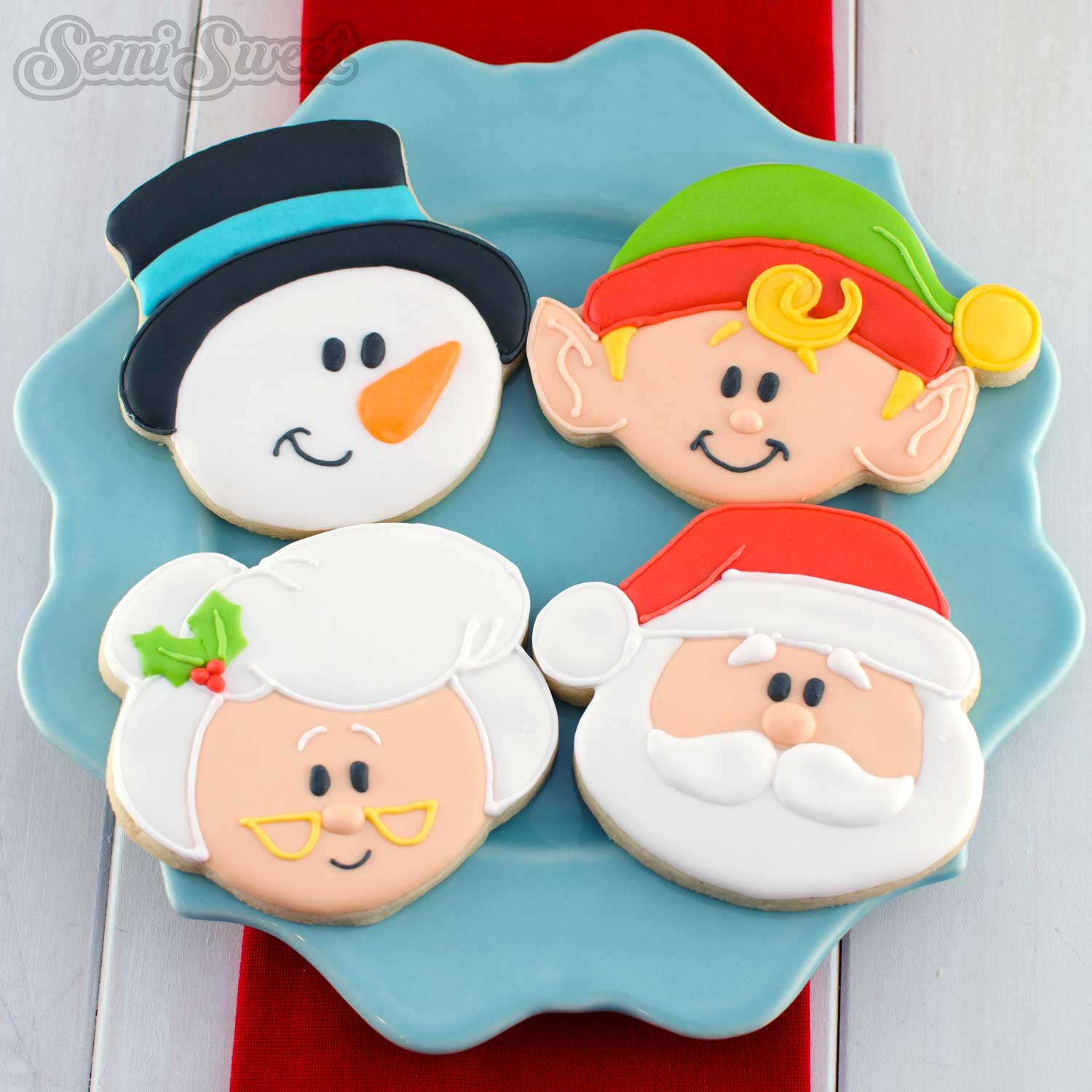 To help with the decorating process, I made a PDF template available for all the Christmas cookie designs shown. In the file you will find a template for Mrs. Claus, Santa, the snowman, and an elf. Also, there's a separate second template for the head-only designs.